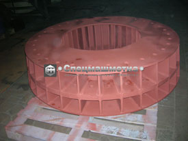 Каждый ростверк представляет собой готовую сварную конструкцию высотой 400мм и диаметром от 1200 до 1800 мм. Нижний и верхний фланцы привариварены к торцам обечайки. Жесткость конструкции обеспечивается несколькими десятками ребер толщиной 16мм. Между ребрами жесткости ввариваются упорные анкерные пластины из листа 50 мм, к которым крепятся шпильки. В связи с большими нагрузками и суровым климатом полуострова Ямал для изготовления применен листовой металлопрокат из хладостойкой низколегированной стали 09Г2С толщиной от 16 до 50 мм. Крепеж будет изготовлен из стали 09Г2С-6 и поставлен Заказчику по отдельной заявке. Масса каждого ростверка варьируется от 950кг до 2300кг.